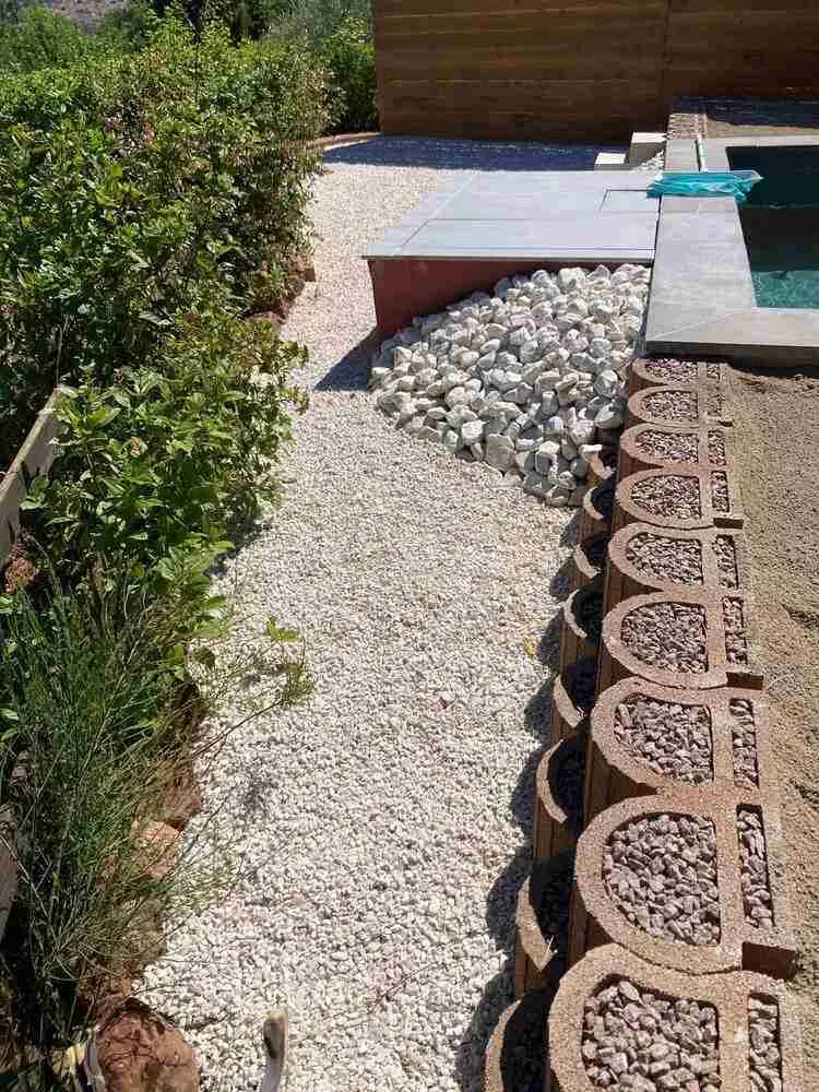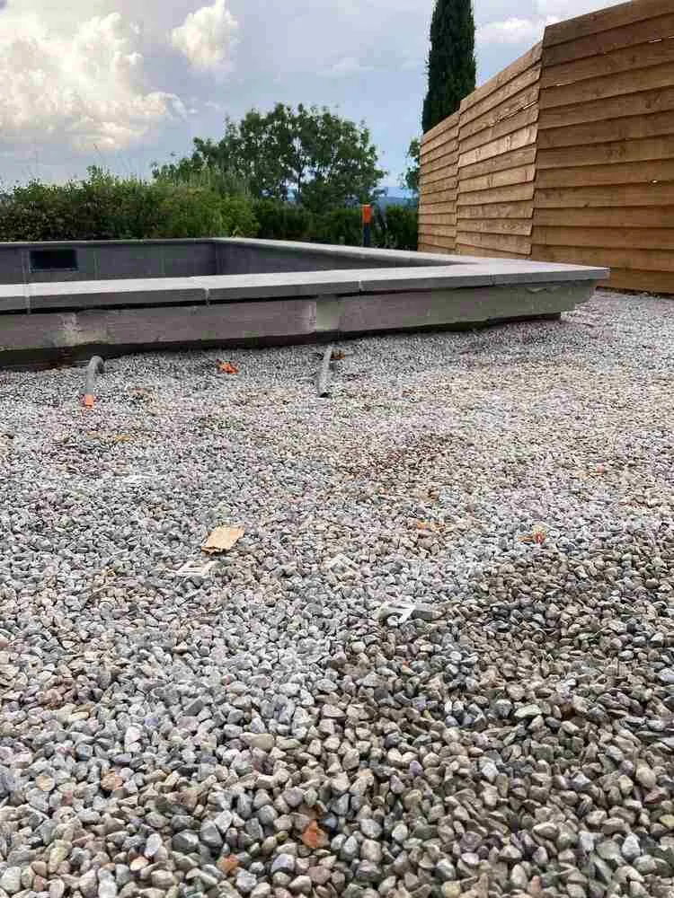 Cet aménagement d'un petit muret pour rehausser le terrain d'une maison à Clermont-l'Hérault a permis de corriger un désalignement entre la piscine et le reste du terrain. L’intervention menée par ABJ ENVIRONNEMENT visait à créer une zone harmonieuse et sécurisée autour des margelles tout en garantissant la stabilité de l’ensemble du terrain.
