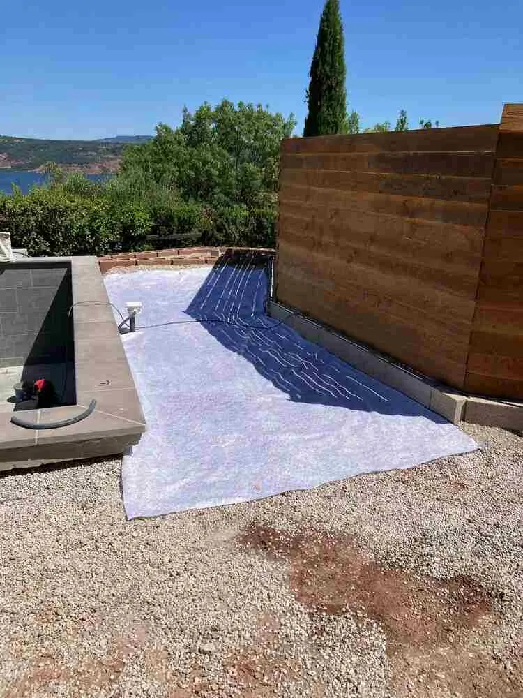 La piscine du client se trouvait légèrement surélevée par rapport au sol, rendant l’aménagement extérieur complexe et visuellement déséquilibré. Pour corriger cette différence de niveau, un petit muret a été construit afin de rehausser le terrain et obtenir une surface plane à hauteur des margelles. Ce type d’aménagement permet non seulement d’améliorer l’esthétique du jardin, mais aussi de sécuriser les abords du bassin.