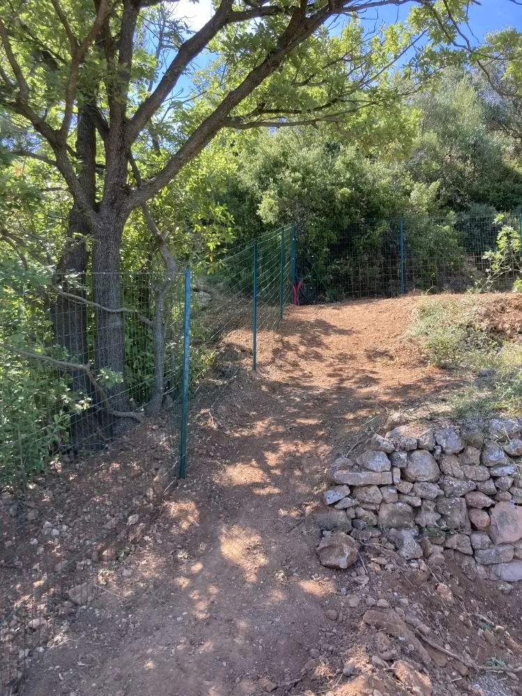 Création d'une clôture "anti sanglier" sur restanques à Nébian par l'entreprise ABJ environnement.
